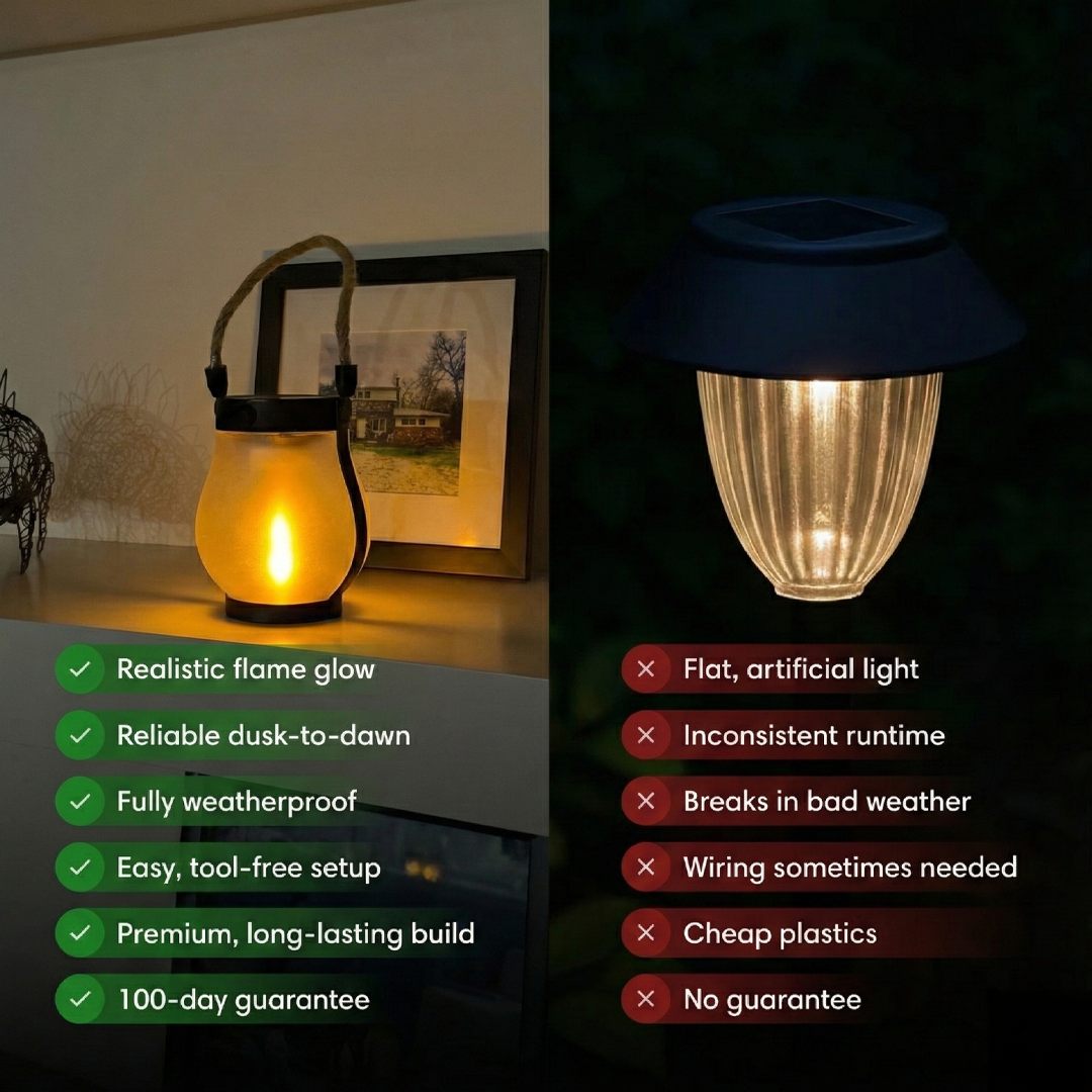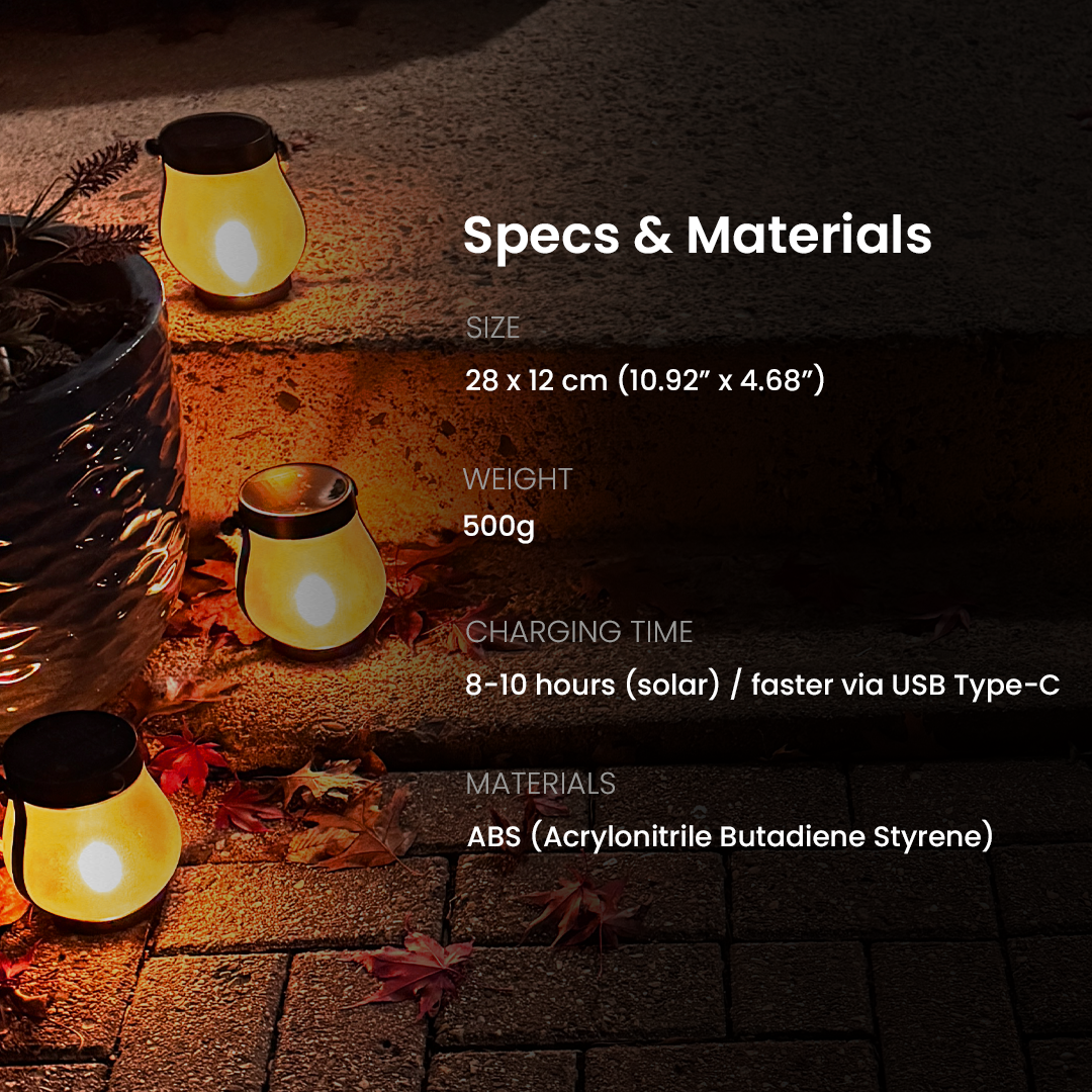 Settu ljóskerið þar sem þú vilt. Það hleðst yfir daginn og kviknar sjálfkrafa í rökkri — án uppsetningar.