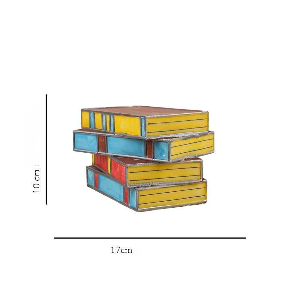 📚 Listræn bókahönnun úr lituðu gleri Einstakt og fallegt hönnunarstykki fyrir bókaunnendur og stílhrein heimili.